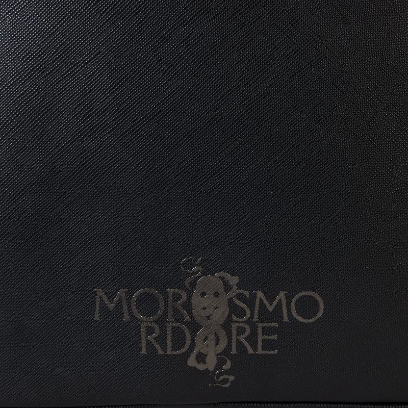 Heading to Malfoy Manor for an important meeting? Do so in style with our Harry Potter™ Death Eater Mini Backpack. This wickedly fashionable accessory features an oval-shaped front pocket with a Death Eater’s face that comes to life in applique, silver metallic vegan leather, and embroidered detail. Elegant flourishes appear on the main part of the backpack, just behind the front pocket, and they continue on the side panels. On one side panel, you will find the image of a serpent, and on the other, a skull. Turn the backpack around, and the incantation for conjuring up the Dark Mark appears: “Morsmordre.” Pack your potions, wand—or daily essentials—and take off on magical adventures in character.